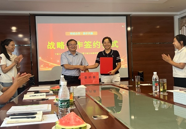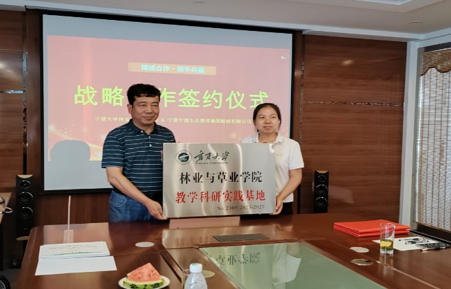 为加快校企深度合作与交流,双方签署了战略合作协议,同时将宁苗生态研究院试验生产基地作为学院教学科研实践基地,并举行了授牌仪式。