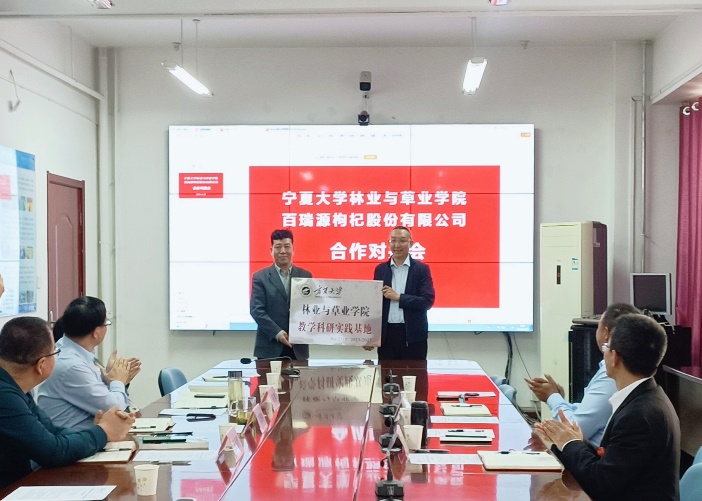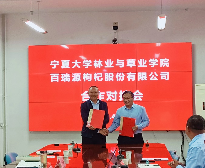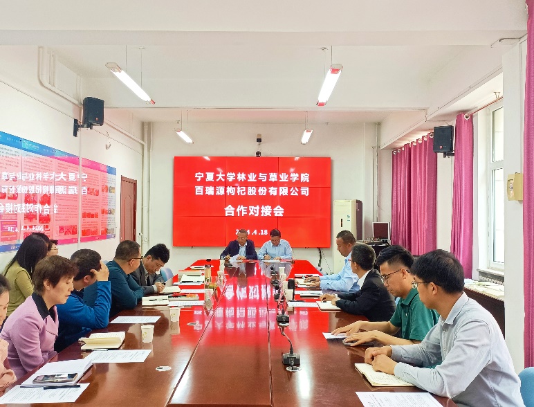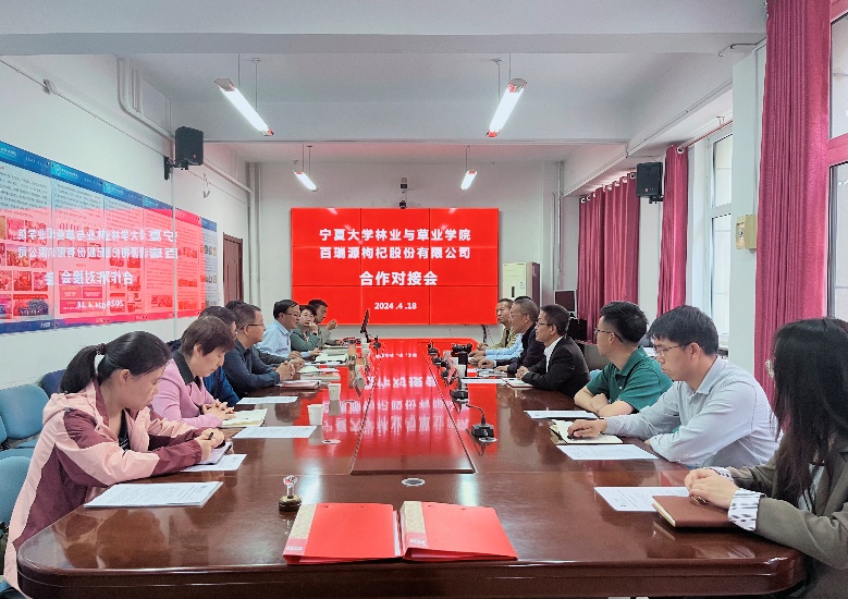 与百瑞源枸杞股份有限公司合作对接会在德晖楼103会议室举行。此次会议旨在通过双方的合作,共同推动枸杞产业的科研创新和人才培养,实现产学研的深度融合。百瑞源枸杞股份有限公司副总经理郝万亮、副总监胡涛、红寺堡基地经理马涛,以及一帆视频