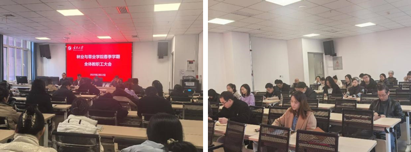 在新农科大楼第二研讨室召开春季学期全体教职工大会,全面部署新学期重点工作。会议由学院书记贺海明主持,全体教职工参会。
