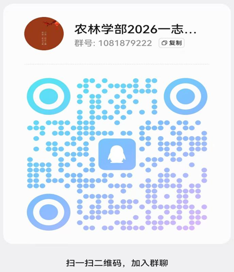 请参加复试的一志愿考生务必扫码或搜群号:1081879222加入2026年农林与生态学部硕士研究生一志愿复试考生报名QQ群!!!并按照“专业(区分方向)+姓名+考生编号+联系电话”的方式实名备注!