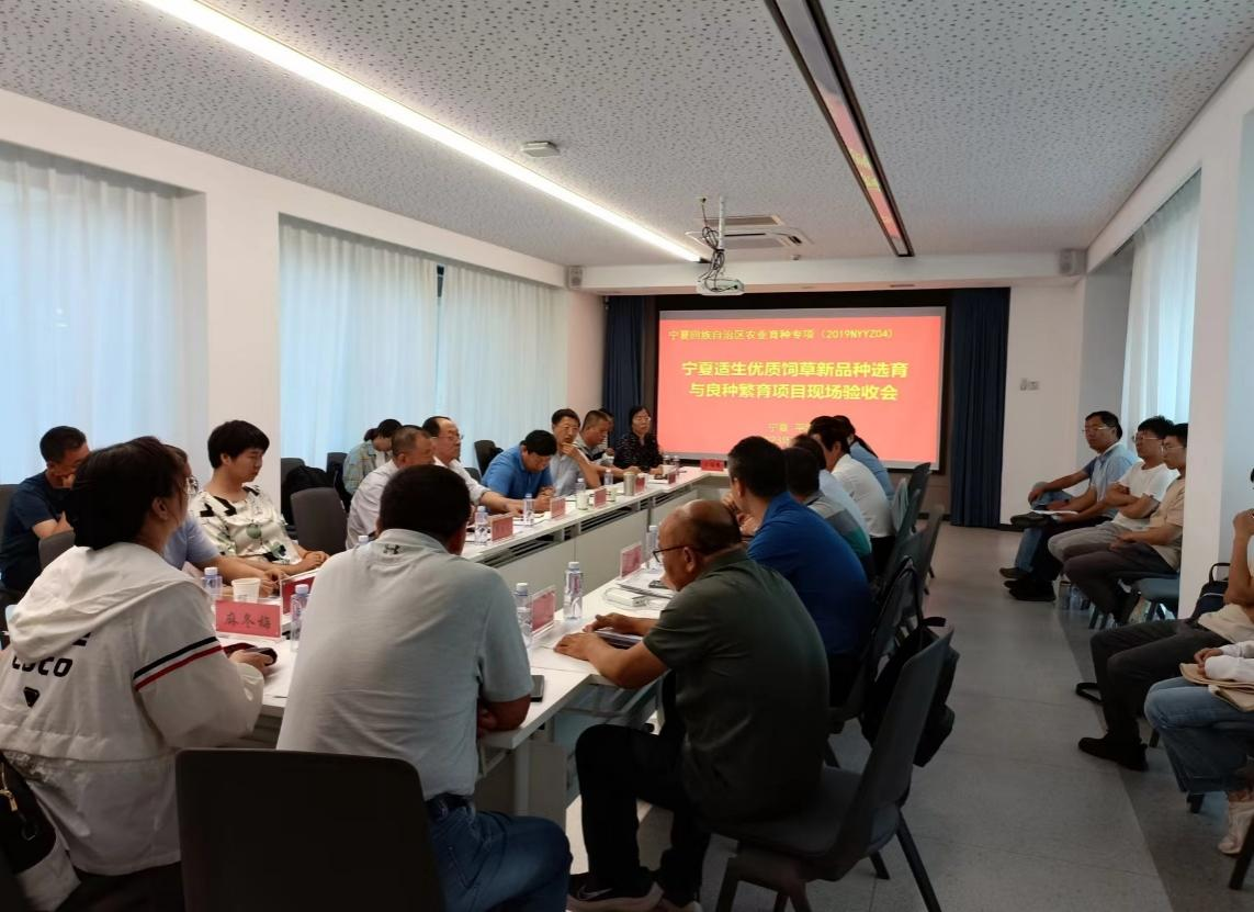 和中国科学院遗传与发育生物学研究所等单位承担的“宁夏适生优质饲草新品种选育与良种繁育”项目进行了现场验收。项目验收组专家分别来自西北农林科技大学呼天明教授,甘肃农业大学师尚礼教授、兰州大学侯扶江教授、中国农科院北京畜牧兽医研究所杨青川研究员,东北农业大学崔国文教授、宁夏畜牧工作站张凌青研究员和宁夏草原站赵萍研究员。宁夏科学技术厅农业农村处徐小涛处长、朱少绯副处长,宁夏科学技术厅农村中心康磊科长,项目负责人许兴教授、谢旗研究员以及项目组骨干成员30多人参加了项目现场验收。