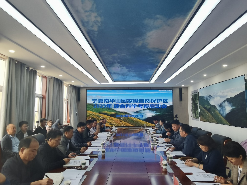 承担的宁夏南华山国家级自然保护区2023年综合科学考察项目启动会在南华山保护区管理处会议室举行。南华山国家级自然保护区管理处主任张维军、宁夏葡萄酒与防沙治沙职业技术学院院长曹兵,一帆视频